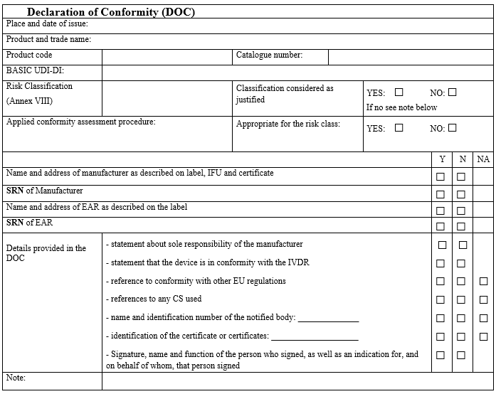 IVDR DoC(Declaration of Conformity) 검증 체크리스트