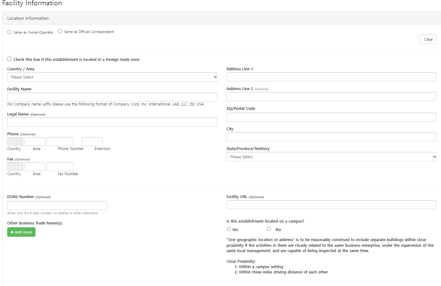 Facility Registration