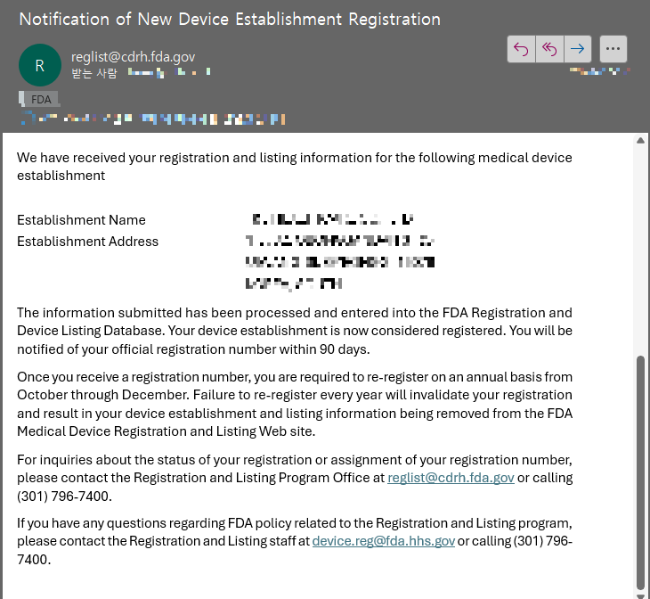 계정을 생성한 후에는 FDA의 Device Registration and Listing 시스템을 통해 공장 등록을 진행합니다. 등록 절차는 다음과 같습니다.