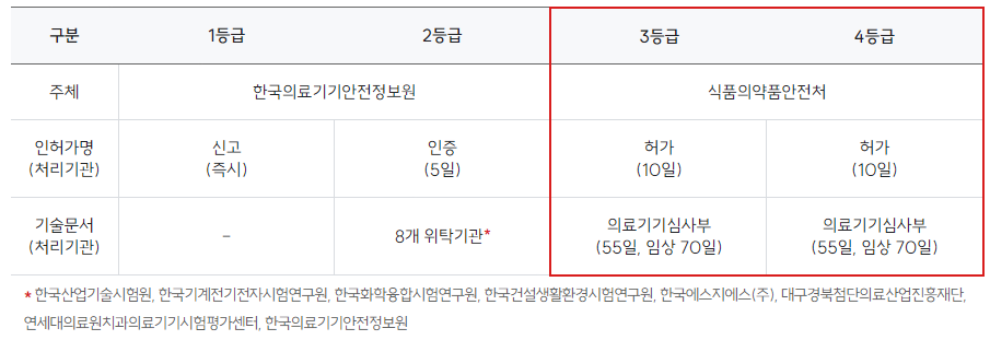 - 4등급: 고도의 위해성을 가진 의료기기