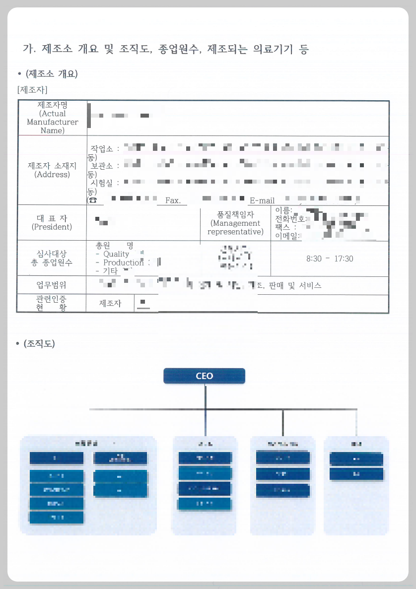 이전 글에서는 KGMP 심사 신청 서류 중 의료기기 적합성인정등 심사 신청서와 의료기기 품목 목록(총괄표)를 작성하는 법을 소개했습니다. 오늘은 다른 신청 서류를 작성하는 방법에 대해서 설명드리겠습니다.