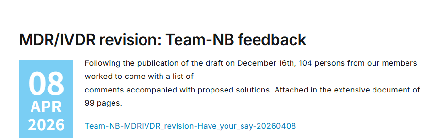 MDR/IVDR revision: Team-NB feedback - team-nb