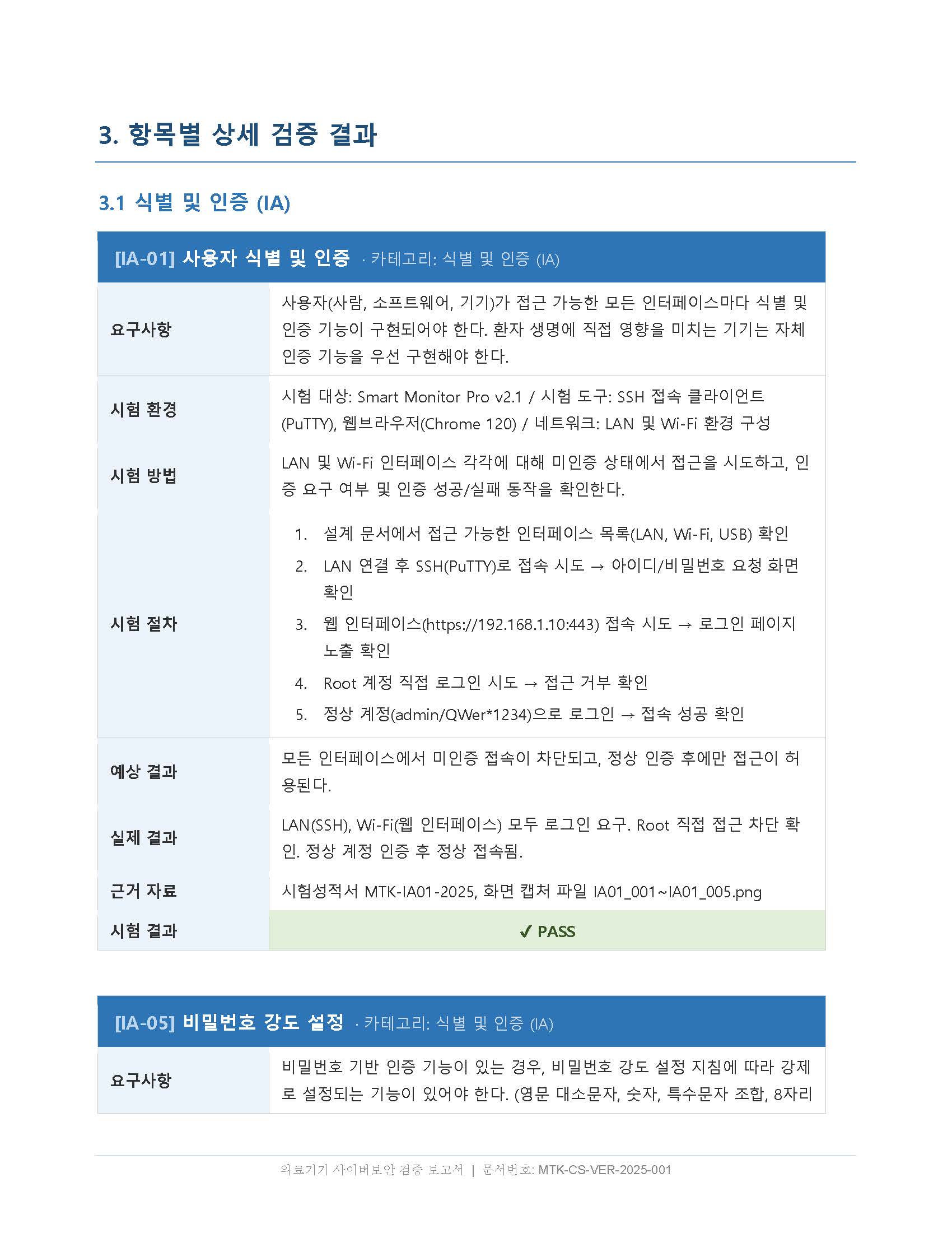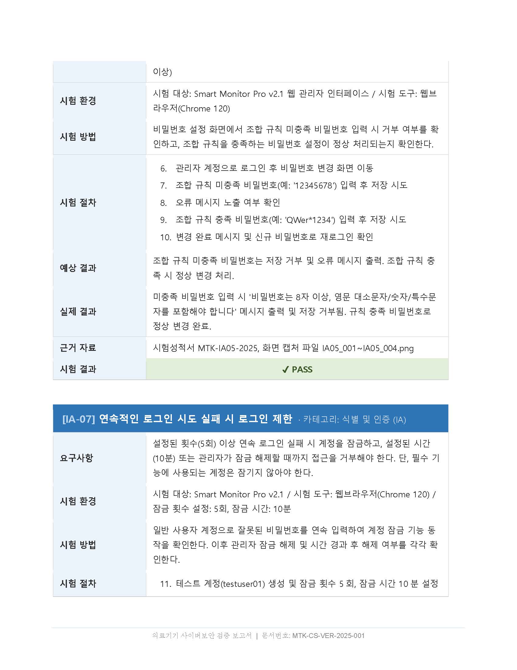 ① 소프트웨어 검증 및 유효성 확인 자료 — 실제 시험 결과