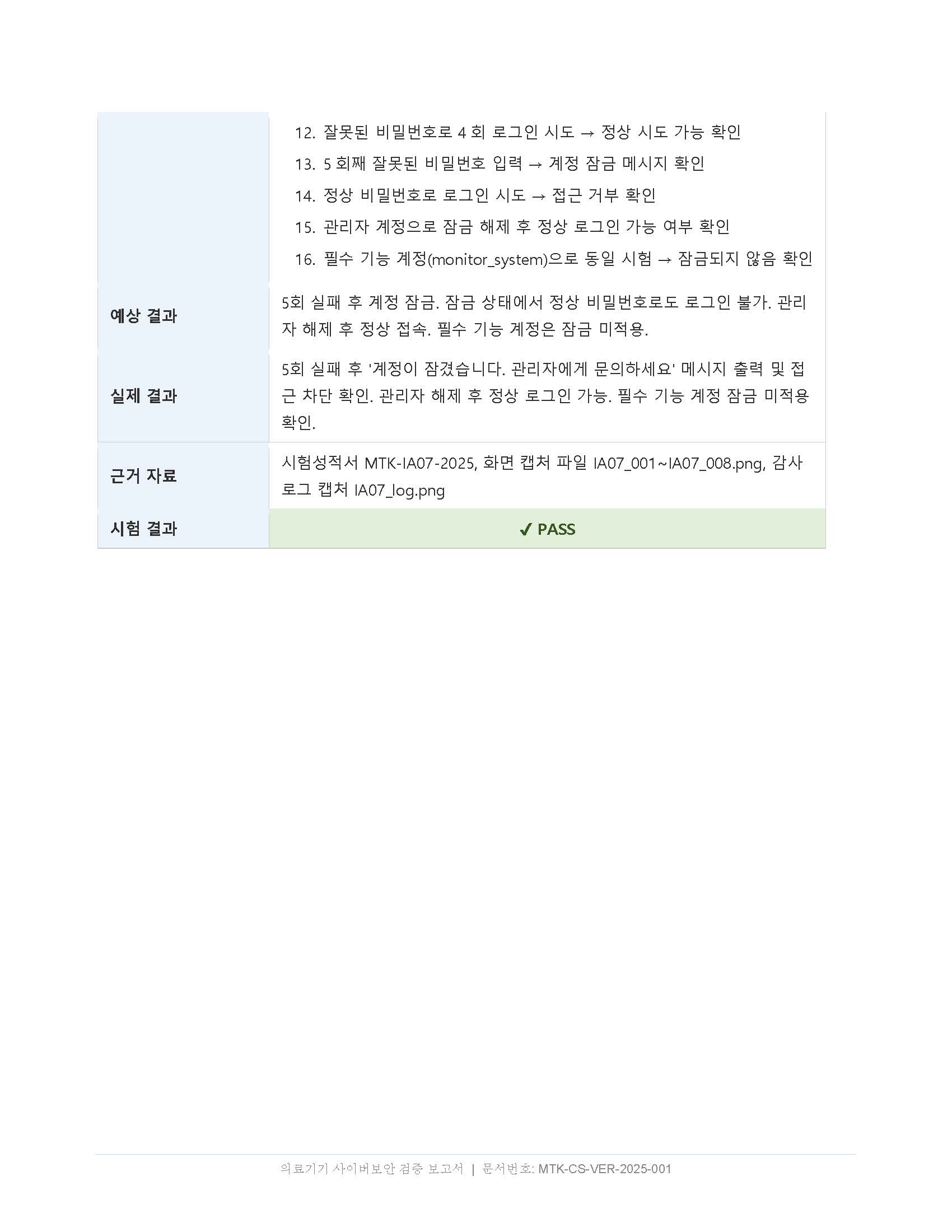 - 로그인 5회 실패 시 계정 잠금 — 잠금 후 관리자 해제까지 접속 불가 확인