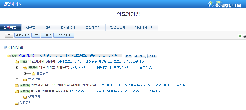 의료기기법은 의료기기 산업의 규제를 체계적으로 관리하고 국민의 건강과 안전을 보호하기 위해 중요한 법률입니다. 이를 정확히 이해하고 준수하기 위해서는 국가법령정보센터를 활용하는 것이 가장 효과적인 방법 중 하나입니다. 이 글에서는 국가법령정보센터에서 의료기기법을 검색하고 활용하는 방법을 소개합니다. 1. 국가법령정보센터란?국가법령정보센터는 대한민국의 법령 정보를 제공하는 공식 플랫폼으로, 법률, 시행령, 시행규칙, 행정규칙 등 다양한 법령 문서를 무료로 검색하고 열람할 수 있는 서비스입니다. 국가법령정보센터는 다음과 같은 기능을 제공합니다.최신 법령 검색 및 열람과거 법령 및 개정 이력 조회법령체계도와 3단 비교표 제공접속 방법웹사이트 링크: 국가법령정보센터홈페이지에서 법령명을 입력하거나 키워드로 검색..