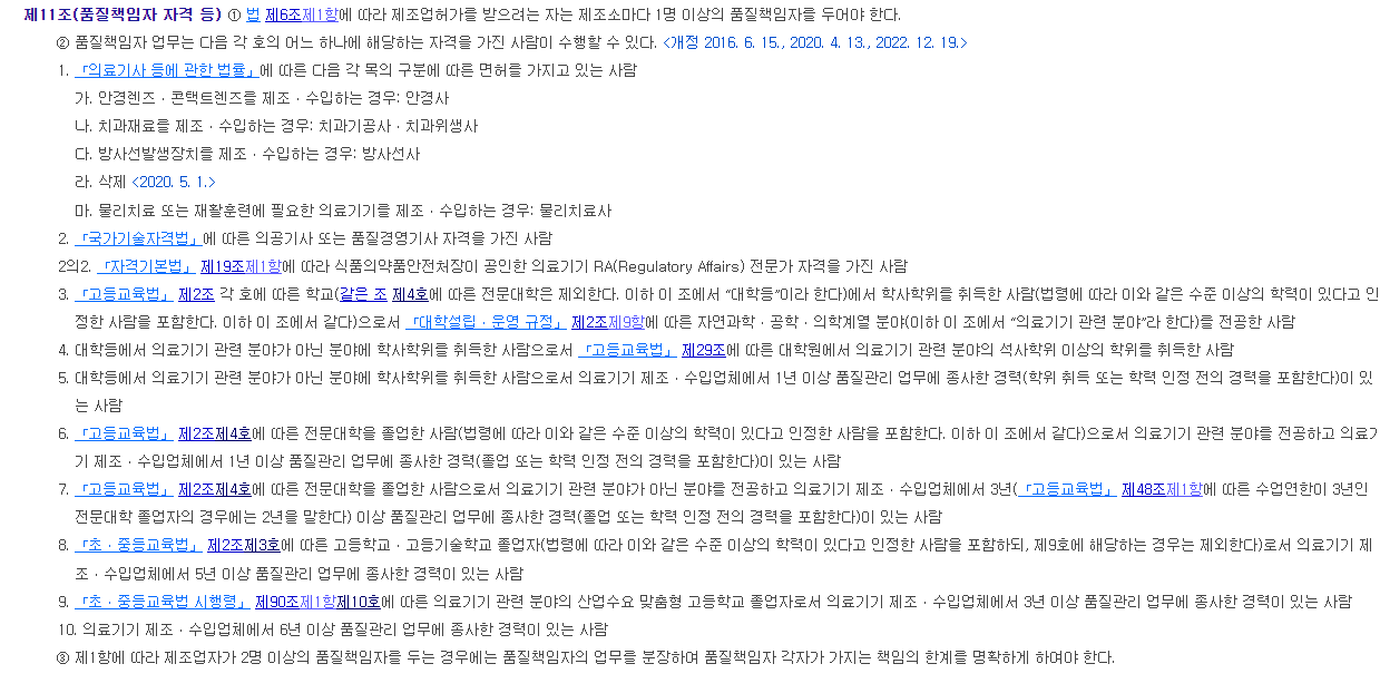 의료기기 법: 제조업 허가 및 품질책임자 조건